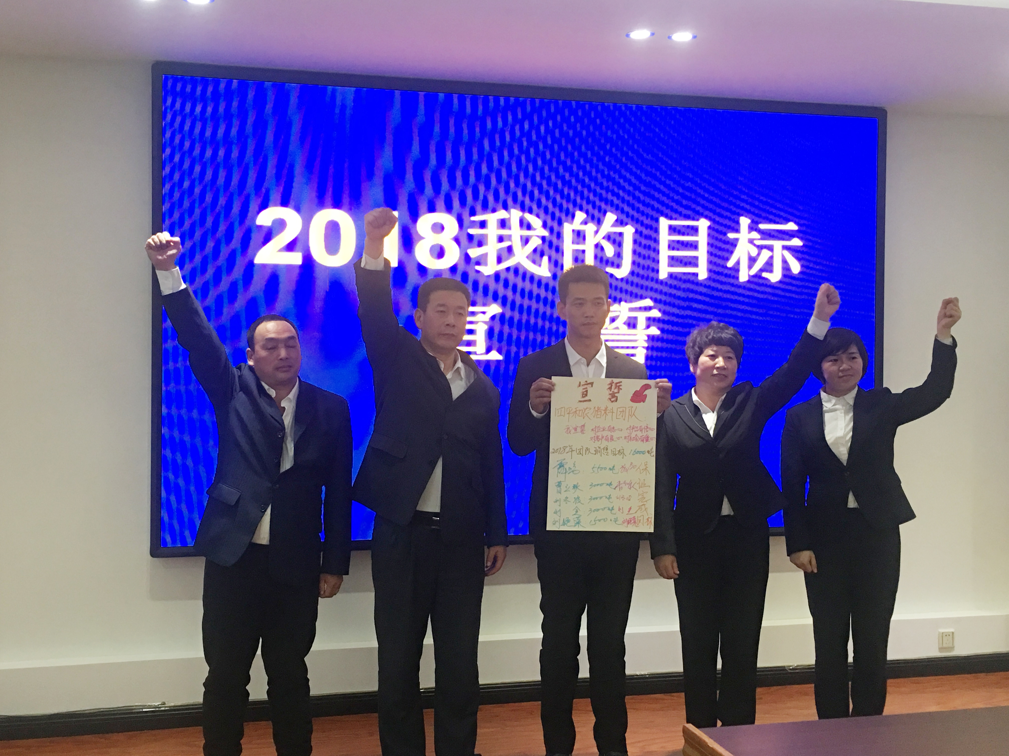 2018年1月3日,和農(nóng)牧業(yè)集團(tuán)2018年?duì)I銷目標(biāo)宣誓在公司會(huì)議室召開(kāi)?!皩?duì)企業(yè)有忠心,對(duì)產(chǎn)品有信心,對(duì)用戶有良心,對(duì)社會(huì)有愛(ài)心。我宣誓在2018年做到……”等鏗鏘有力的宣誓聲響徹整個(gè)會(huì)議現(xiàn)場(chǎng)。